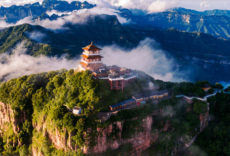 Wangwushan-Daimeishan UNESCO Global Geopark is located in Jiyuan City and Xin’an county,the north west part of Henan Province. It is composed of six typical scenic areas such as Wangwushan,Xiaogoubei(Yinhe valley ) Fengmenkou ,the Yellow River Three Gerges LongtanValley and Daimeishan ,covering an area of 986k㎡. The geopark